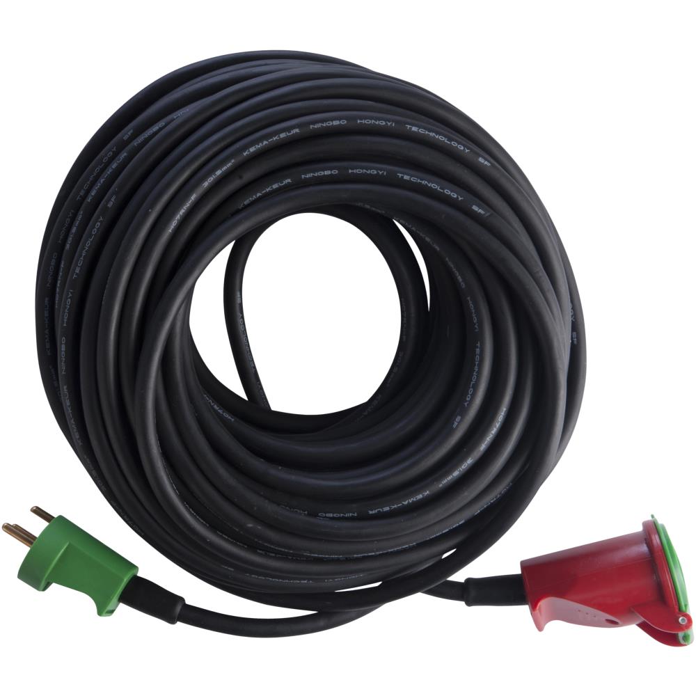Kabelsæt med DK stikprop og forlængerled med jord. Med 3G1,5 mm² neopren-gummikabel H07RN-F. 230 V, 16 A. 3.680 W. IP44. Fås i 3 længder: 10, 15 og 25 mtr.