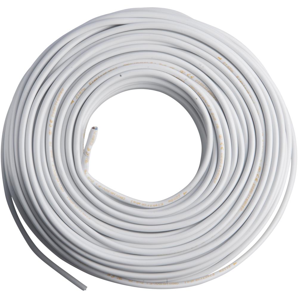 Hvid, rund plastkappeledning 2G0,75 mm² H03VV-F. Fås i flere længder.