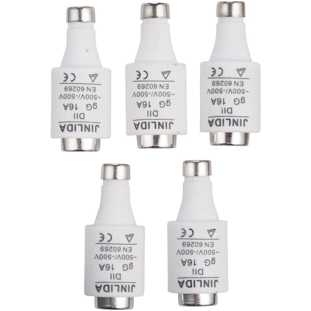 Diazed DII sikring til anvendelse i gruppeafbrdere som kortslutnings- og overbelastningsbeskyttelse. Pk/5 stk. Fås i flere varianter.