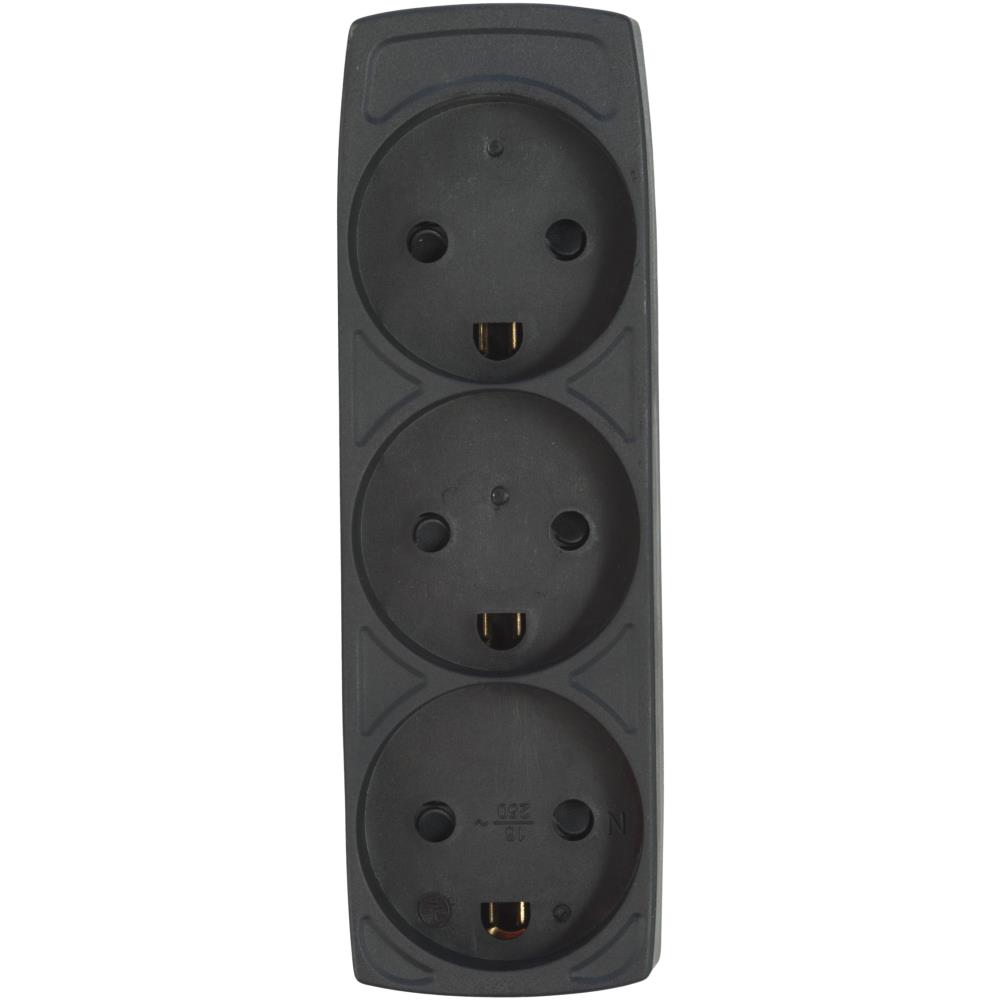 Hvid 3-vejs stikdåse med jord – uden ledning. 230 V, 16 A. Børnesikret model.