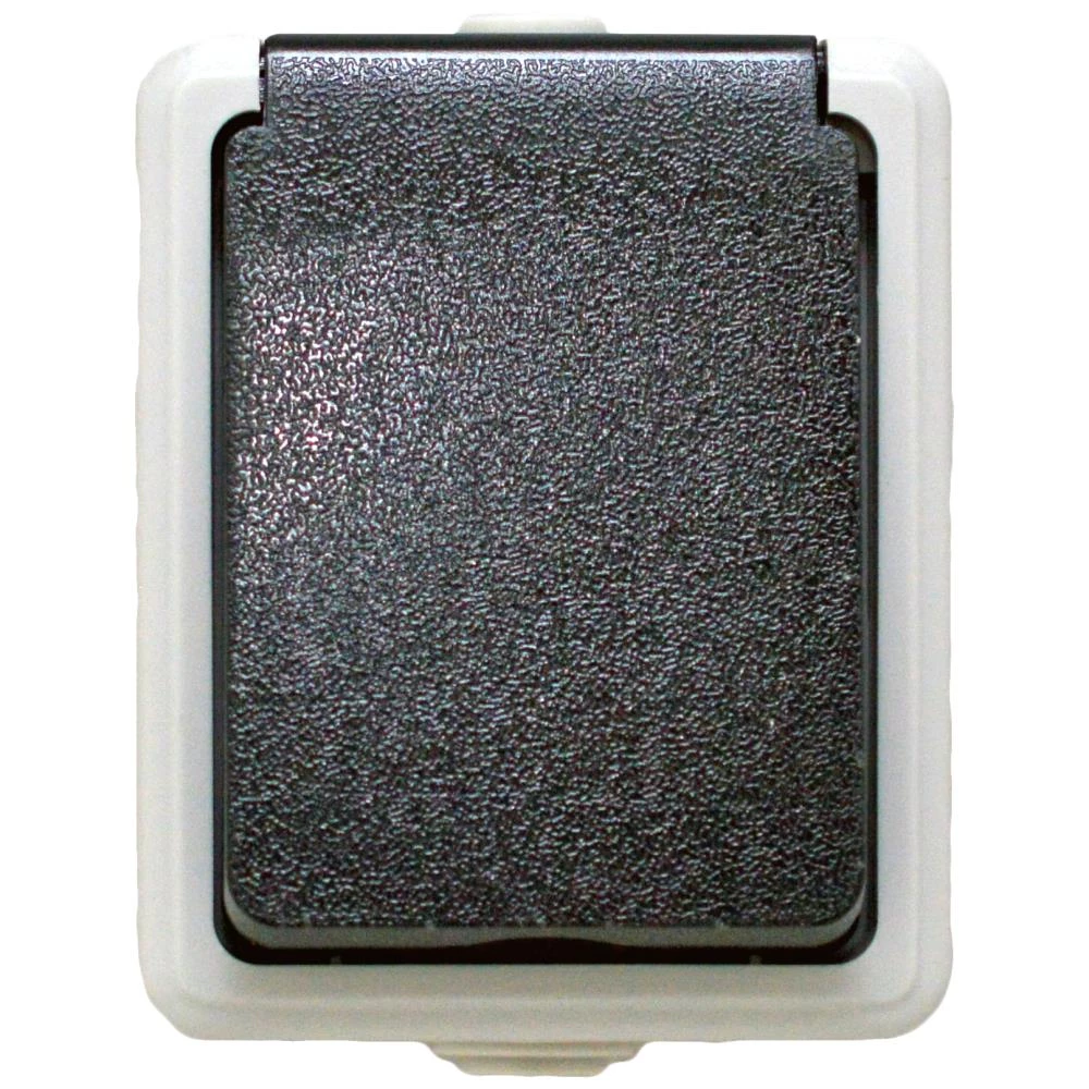 Grå/sort E-Line udendørs-stikkontakt med jord. 230 V, 13 A. IP54.