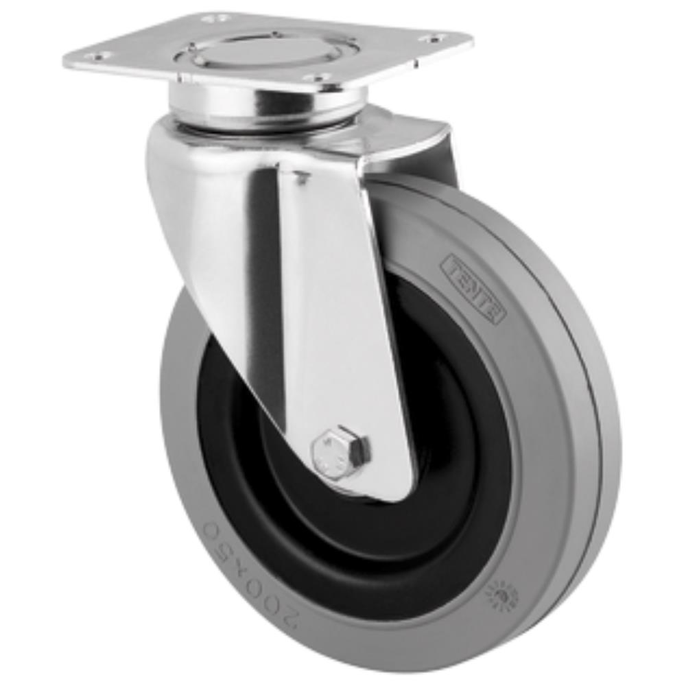 Drejeligt hjul, sværlast, 200mm, belastning 600 kg, nav i stål med grå gummibane, DIN-kugleleje