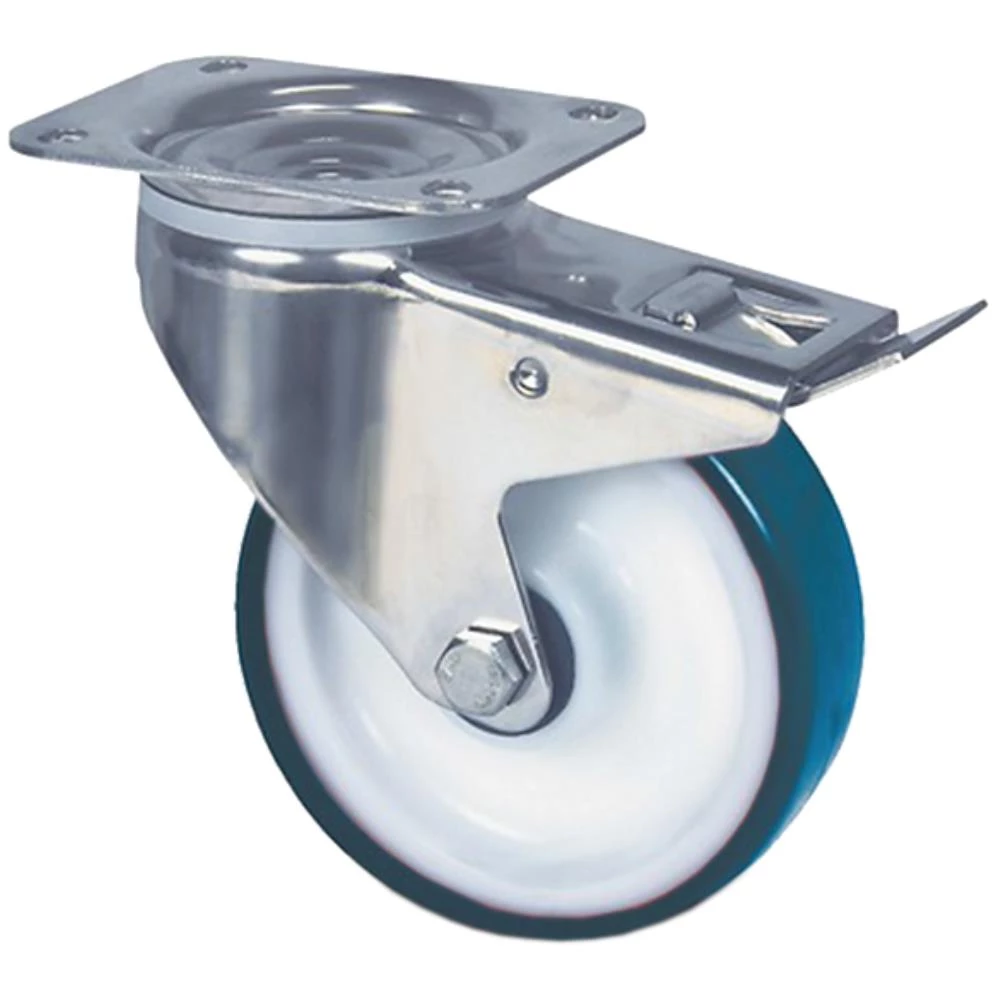 Drejehjul m/bremse 8477 UAD 160 P63 rustfri blå