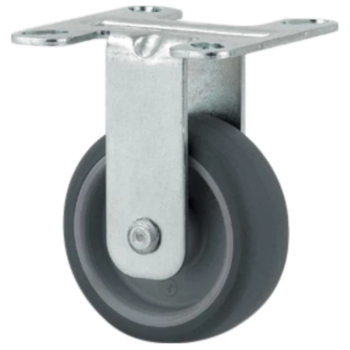 Fast hjul, 50 mm, grå gummi, glideleje, plade, 50 kg