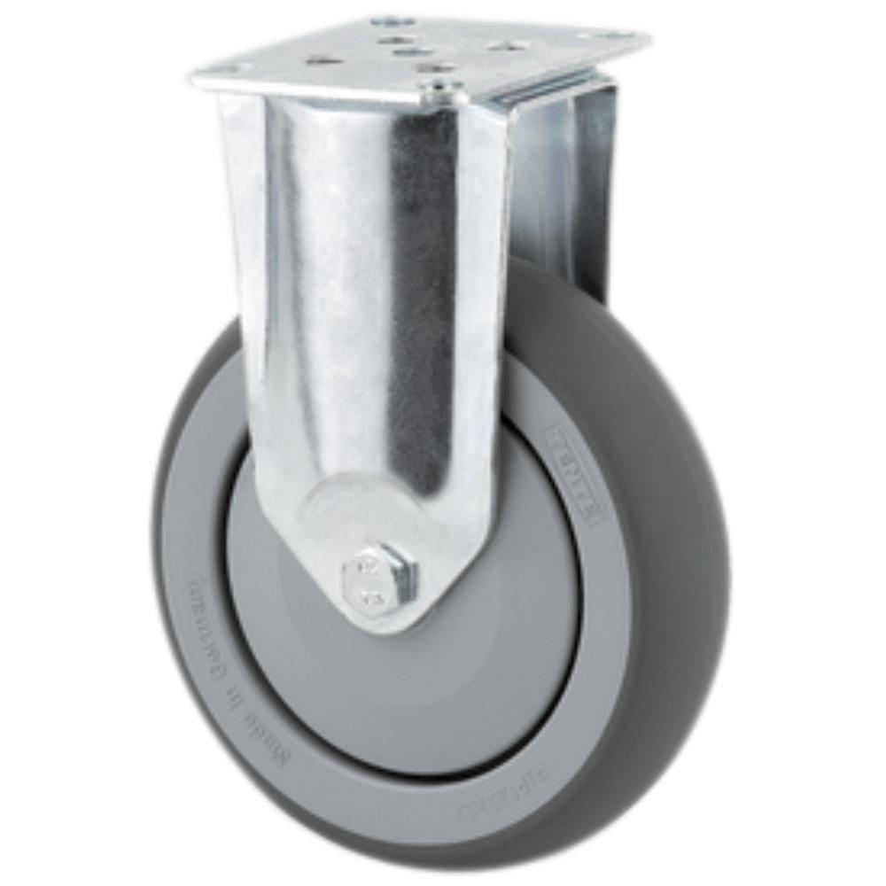 Fast hjul, 100 mm, grå gummi, DIN-kugleleje, bolthul, 100 kg