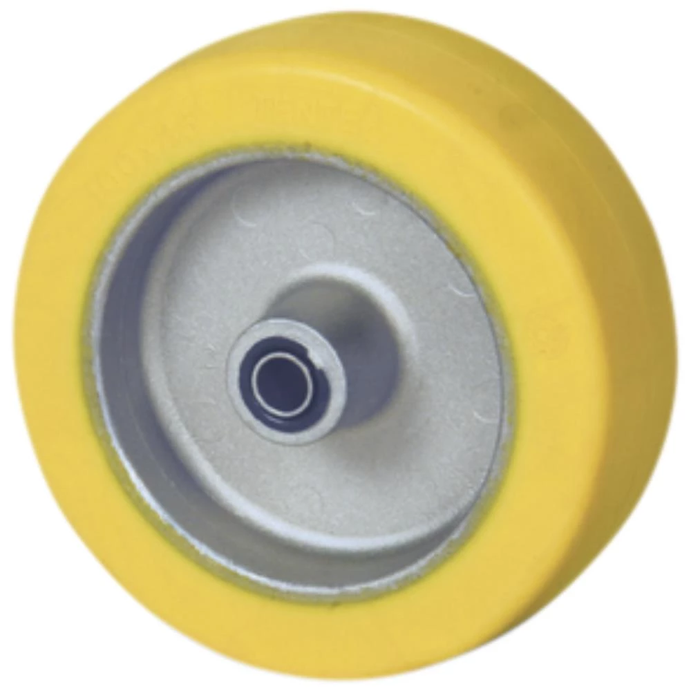 Løst hjul, Ø100 mm. Transport, belastning 80 kg. Nav i aluminium med gummibane, varmefast. Glideleje, selvsmørende teflonbøsning