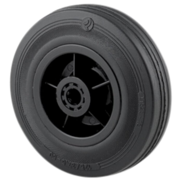 Løst hjul med nav i polypropylen med sort massiv gummibane, rulleleje.