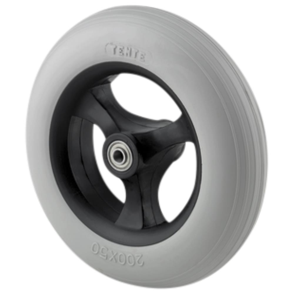 Løst hjul med nav i polypropylen med opskummet polyuretanbane samt DIN-kugleleje. Fås i flere dimensioner.