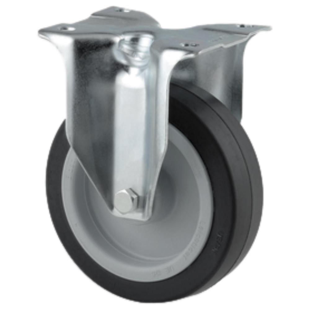 Fast hjul, 160 mm. Transport, belastning 300 kg. Nav i polyamide med elastisk gummibane. Rulleleje