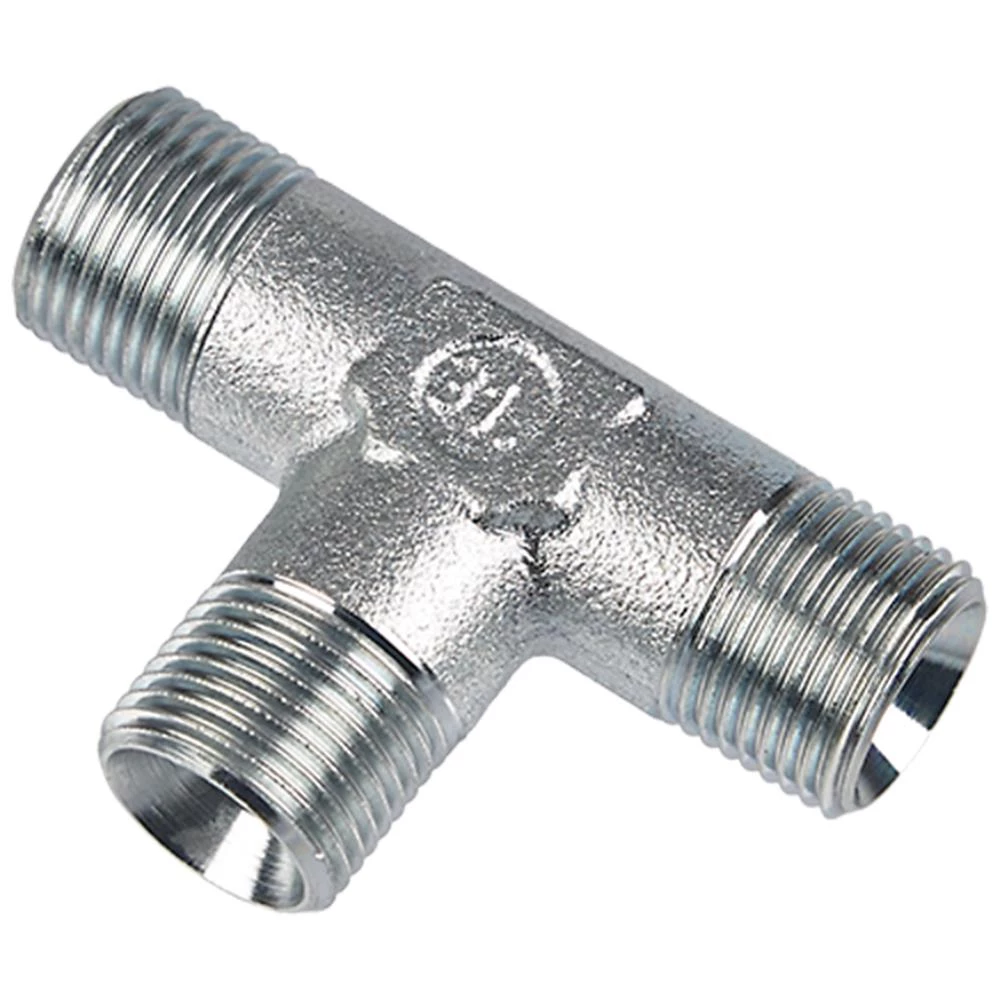 Hydraulisk t-stykke BMMM. BSP han 60° konus. Med pakflade for bonded seals. Tommer. Fås i flere dimensioner.