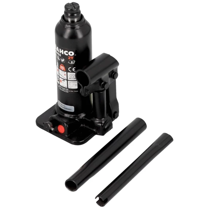 Hydraulisk flaskedonkraft med svejset struktur, hvilket sikrer bedre ydeevne og forhindrer olielækage. Smedet stålbase giver stor slid- og slagfasthed. Forlængelsesskrue (N/A 50 t) giver mulighed for præcis højdejustering. Rillet sadel giver et sikkert løftegreb. Sikkerhedsventil forhindrer stemplet i at blive overbelastet, hvilket ville forårsage skade på stemplet. Kan kun anvendes i vandret position. Arbejdsbetingelser fra ÷20° til +50°C. CE-certificeret af Official Independent Technical Inspection Association. Fås i flere varianter.