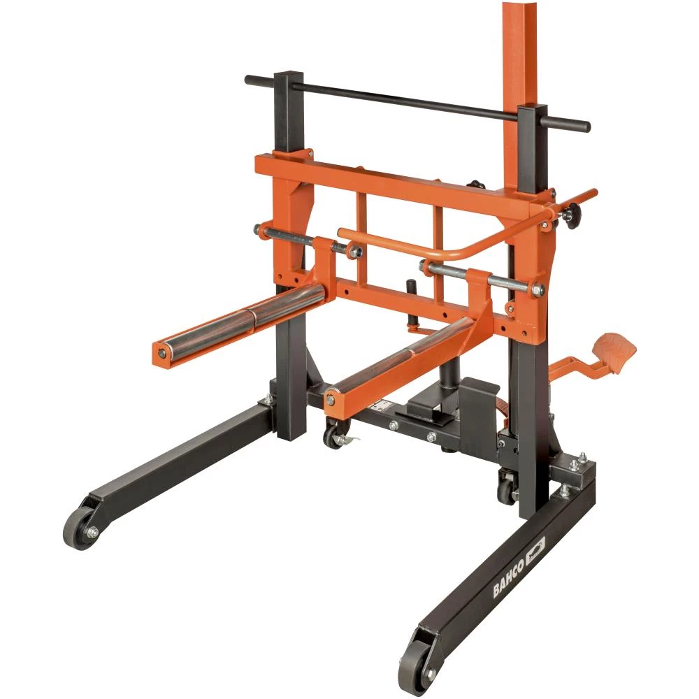 Hydraulisk hjuldolly til løft og forflytning af hjul i garager og på værksteder. Den hydrauliske hjuldolly kan indstilles i fem forskellige positioner, så den passer til forskellige hjul med diameter mellem 300 mm og 1.300 mm. Betjenes nemt enten via håndpumpe eller fodpedal. Store kuglelejeophængte ruller gør rotation af hjulet lettere når det skal justeres i forhold til fx boltehuller. Praktisk håndtag gør det enkelt at håndtere og transportere selv store hjul. Den hydrauliske hjuldolly er forsynet med dødmandsgreb på fodpedalen og fodbeskyttelse for brugerens sikkerhed. Specifikationer: kapacitet 600 kg, kan vinkles op til 4,1 grader.