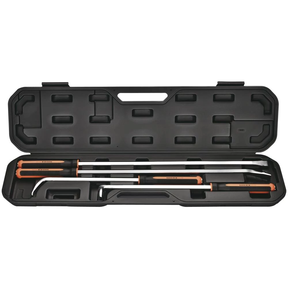Løftejernsæt med 4 stk. lange løftestænger med forskellige vinkler. Løftejernene har ekstra langt skaft, som sikrer moment og tilgængelighed, samt komfortabelt to-komponent håndtag med slagflade der tåler brug af hammer ved genstridige opgaver. Fremstillet af højkvalitets Cr-Mo med forkromet overflade.