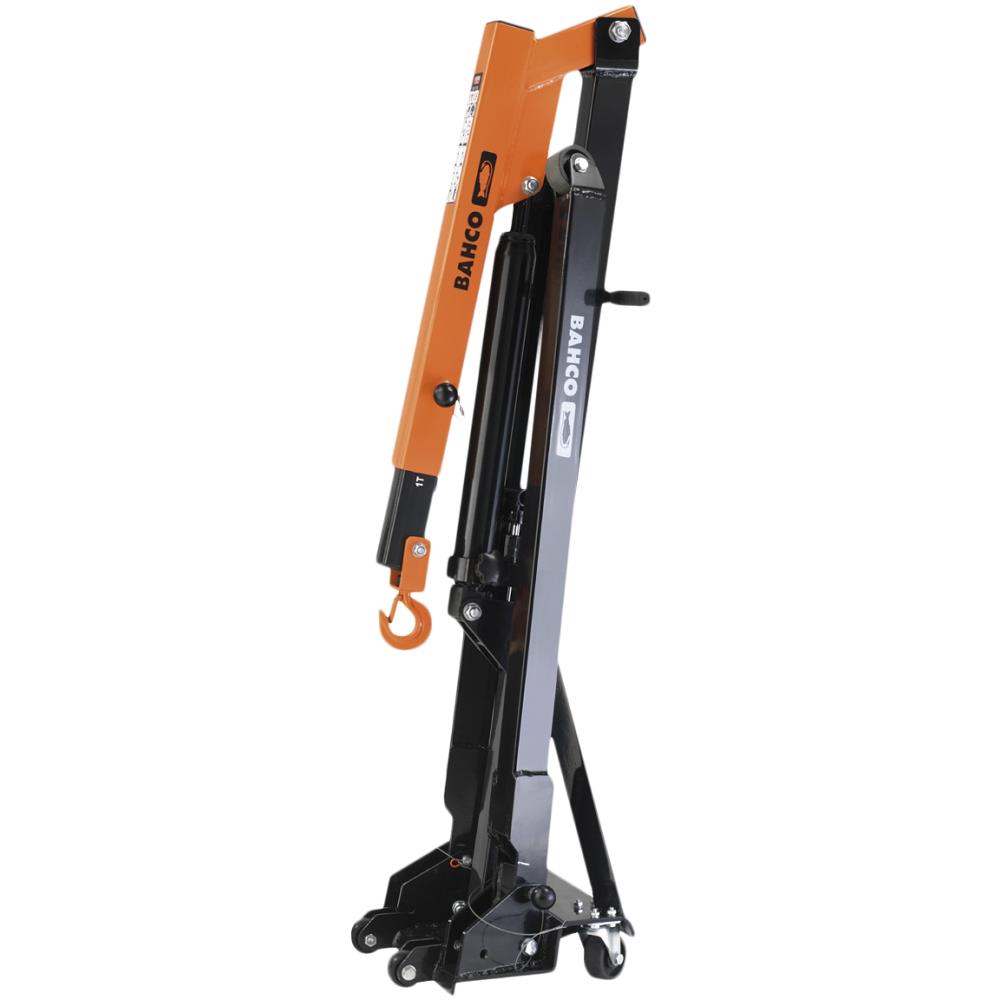 Sammenklappelig med arm der kan indstilles i 4 faste positioner: 1000, 750, 500 og 250 kg. Cylinder med dobbeleffekt som halverer antallet af pumpninger. Stor fleksibilitet: Min. indgangshøjde på 88 mm, Max. kroghøjde 2175 mm. PU-belagte stålhjul. Svingbar pumpeenhed for betjening fra begge sider. Øget sikkerhed: Forsynet med “dødmands” sikkerhedsmekanisme, Sikkerhedsventil mod overbelastning, Sikkerhedskrog med svirvel funktion. Fremstillet i henhold til 2006/42/EC + BS EN1494. Takket være de foldbare ben, kræver kranen et minimum af plads når den ikke er i brug. 4 faste positioner på løftearmen: 1000, 750, 500 og 250 kg. Cylinder med dobbeleffekt som halverer antallet af pumpninger.