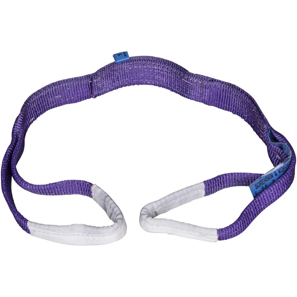 Duplex båndstrop til alle løfteopgaver. Produceret iht. EN 1492-1, sikkerhedsfaktor 7:1. Farvekodet ift. maks. belastning: violet til 1 ton, grøn til 2 ton, gul til 3 ton, rød til 5 ton og brun til 6 ton. Fås i flere længder.