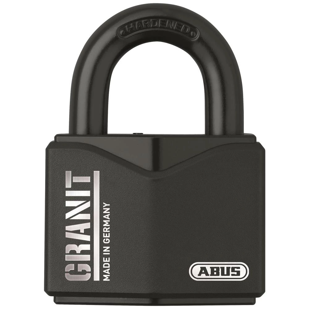 Granit 37-serie hængelås med hus og bøjle af hærdet specialstål og Black Granit-belægning til forbedret korrosionsbeskyttelse. Abus-Plus disc-cylinder. RK-variant: cylinder kan tilpasses eksisterende Abus Plus låseanordninger. Leveres med 2 stk. nøgler – heraf én med LED.