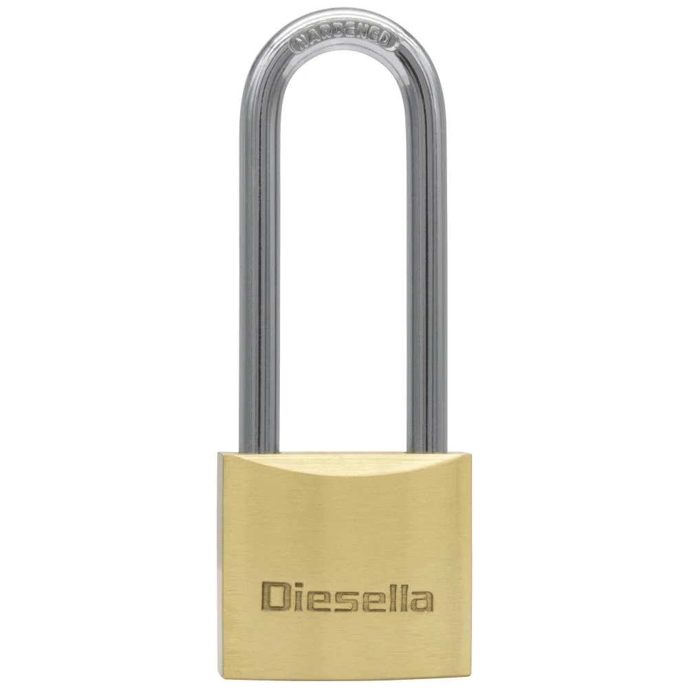 Robust og hærdet hængelås med forlænget bøjle velegnet til mange aflåsningsformål. Fremstillet med hærdet stålbøjle samt hus og cylinder i messing. Leveres inkl. 3 stk. nøgler. Fås i flere varianter.