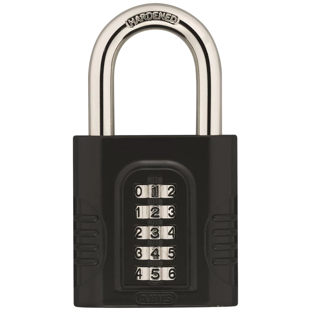 158-serie kodehængelås med robust låsehus i trykstøbt zink og bøjle af hærdet stål. Bøjlen kan låses i begge sider af huset. Fås i flere varianter.