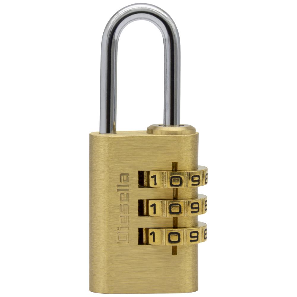 Kodehængelås 21mm, messinghus/stålbøjle, 3-cifret