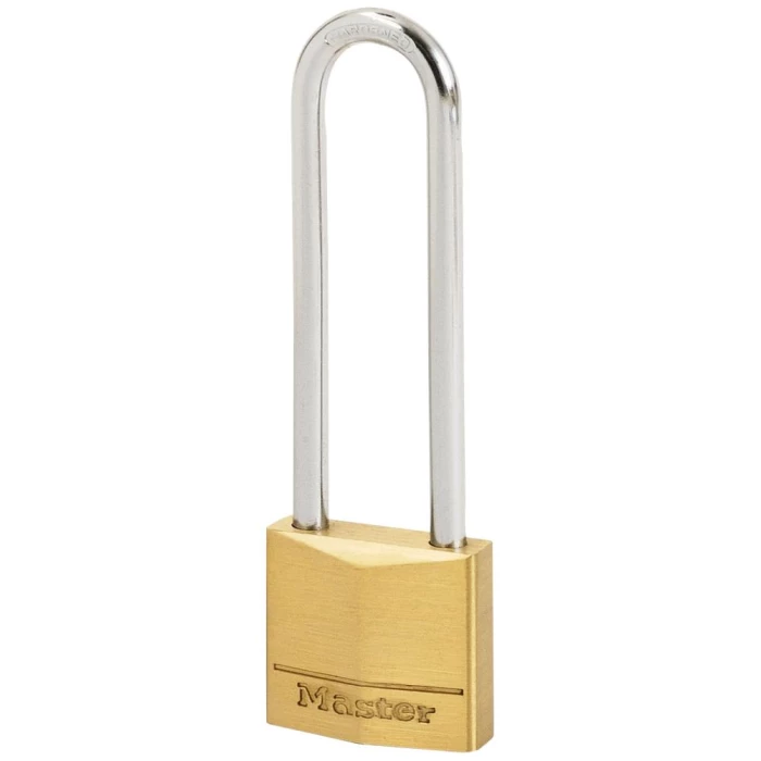 Master Lock hængelås med lang bøjle. Fremstillet i massiv messing der sikrer styrke, holdbarhed og korrosionsbestandighed. Bøjlen er lavet af hærdet stål, som gør den svær at klippe eller save over. Maksimal bøjlelængde giver mulighed for flere anvendelser. Velegnet til indendørs brug. Fås med 4 eller 5 stift cylinder og i flere bredder.