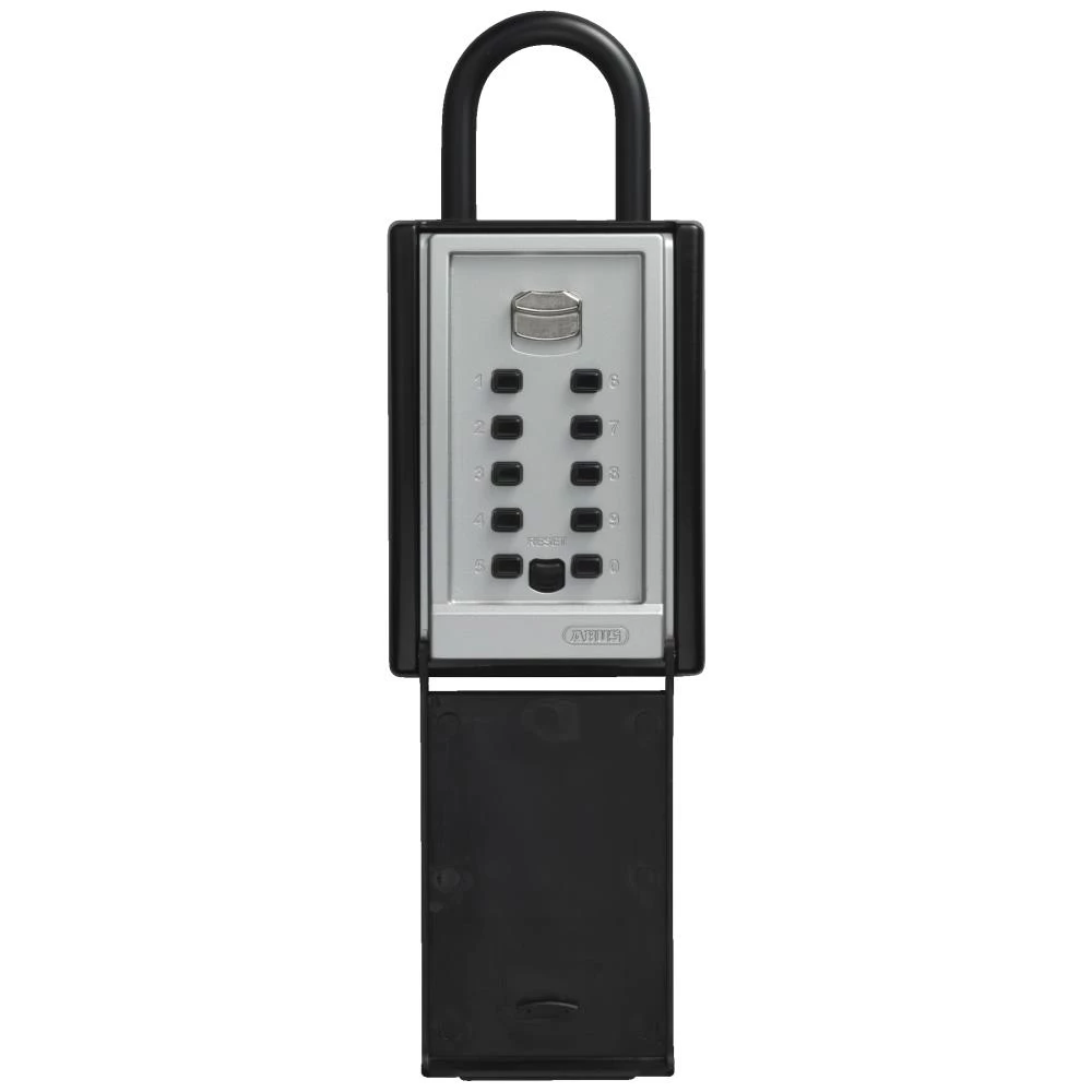 Keygarage 777 nøgleboks med bøjle. Plads til 14 plastikkort eller 20 nøgler. Solidt metalhus med lås af trykstøbt zink med tastatur. Op til 10-cifret kode, der kan indstilles individuelt (indtastningsrækkefølgen har ingen betydning). Plastbeklædt hus og bøjle til beskyttelse mod ridser. Plast-klap beskytter mod fugt og snavs. Fastgøres med bøjlen, fx på dørknop. Koden skal også indtastes for at lukke låsen.