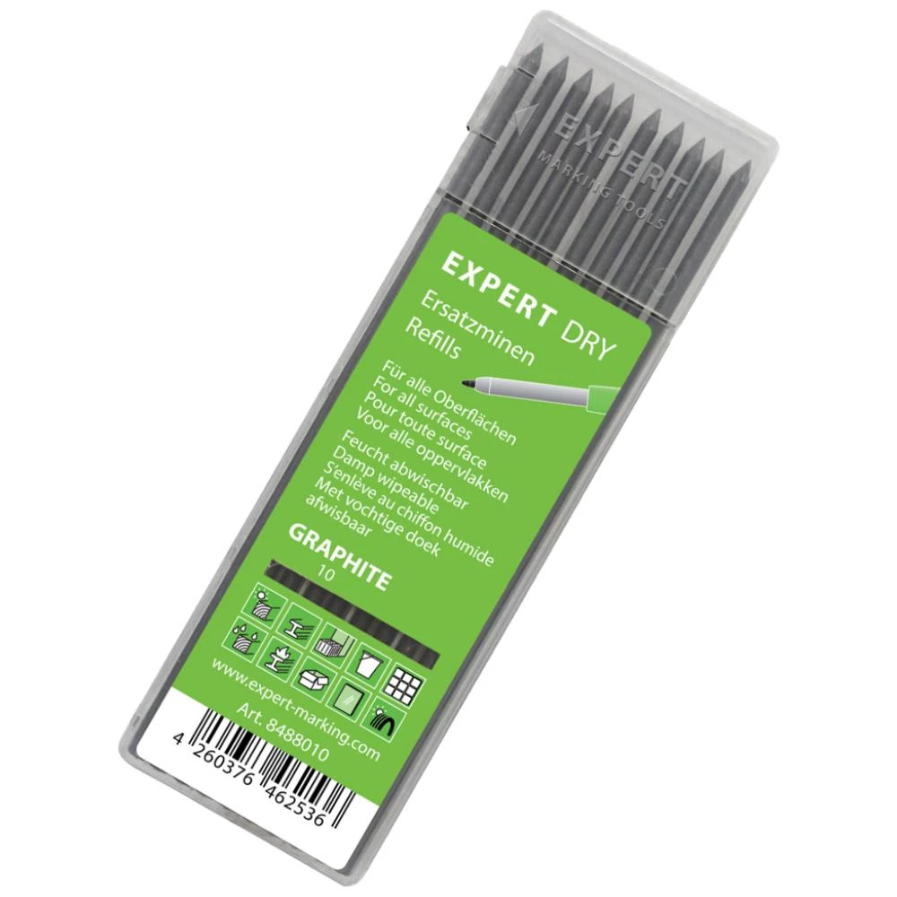 Dry refill stifter, 2,8 × 125 mm. Plastæske med 10 grafitstifter. Kan vaskes af på blanke overflader.