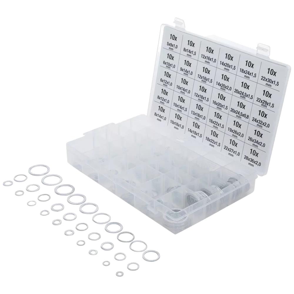 Aluminiumringsortiment med 300 dele (30 str.) Leveres i opbevaringskuffert.