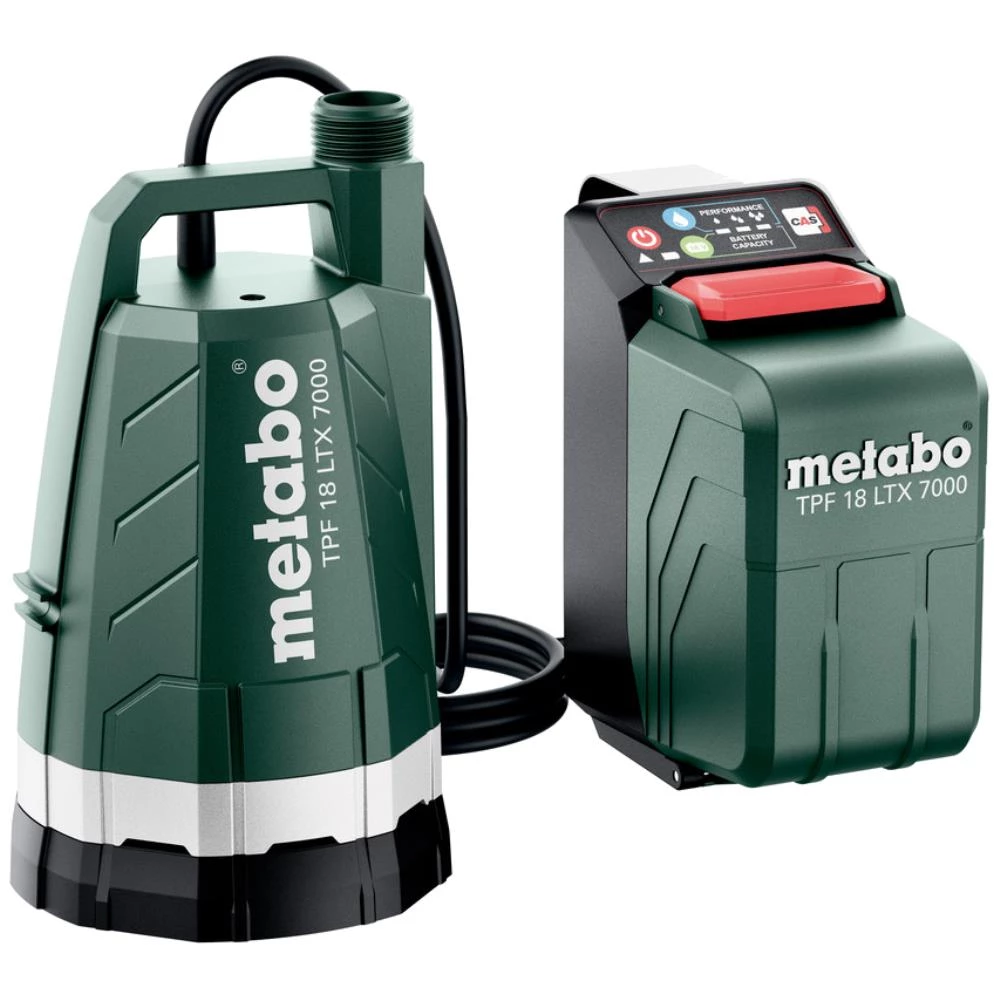 Effektiv akku-dykpumpe til udpumpning af rent vand fra beholdere, vandbassiner og oversvømmede kældre. Fladt udsugende til en resterende vandstand på 1-2 mm. Ekstern batteriboks til beskyttelse af batteriet mod fugt, nem at fastgøre på væggen eller beholderen. Nem betjening og kontrol af pumpe takket være overskueligt betjeningspanel på batteriboksen. Fleksibel dosering af tryk og vandmængde takket være tre effekttrin og reguleringsventil. Velegnet til mange forskellige beholdere takket være den slanke konstruktion (ø142 mm) og det 7 mtr. lange kabel til batteriboksen. Metabo Pump Protection automatisk tørløbsbeskyttelse med LED-display til beskyttelse af pumpen og for høj brugersikkerhed. Lang levetid takket være det dobbelte tætningssystem og overbelastningssikring af motoren. Vaskbart filter. Robust hus af slagfast plast med integreret kabeloprulning og bærehåndtag. Maks. transportmængde 7.000 ltr./time. Maks. transporthøjde 9 mtr. Maks. tryk 0,9 bar. Maks. nedsænkningsdybde 6 mtr. Tryktilslutning 1″ udv. gevind. Kapslingsklasse IPX8 (batteriboks IPX4). Dette produkt kan kombineres med alle 18 V batterier og opladere inden for CAS mærkerne: www.cordless-alliance-system.com.