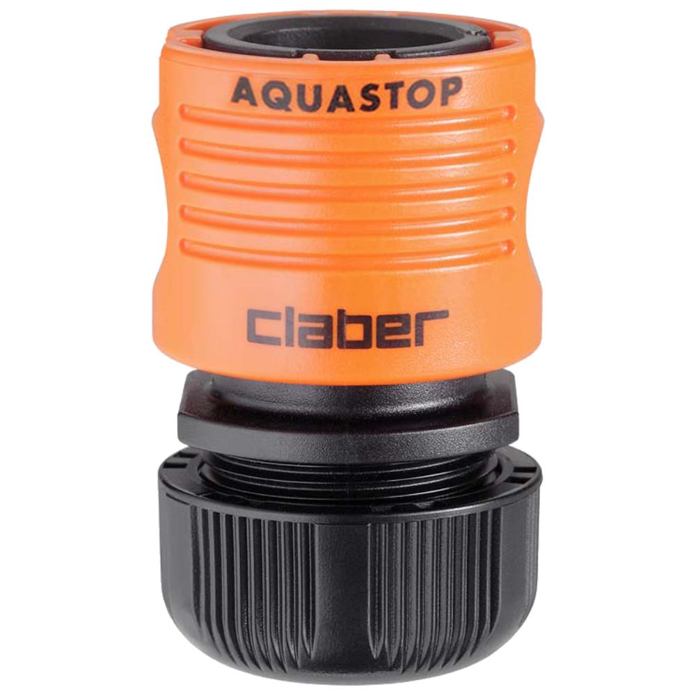 Claber kobling med vandstop til 1/2″ slange. Ved frakobling, afbrydes vandstrømen igennem koblingen. Passer til slange dimensioner: ø indvendig 12 mm, udvendig 17 mm. Fås i flere forpakninger.