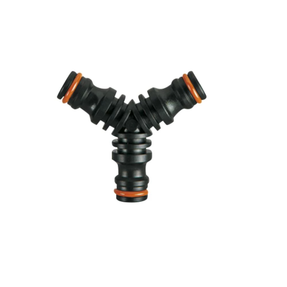 Claber Y-stykke 3-vejs nippel. Til at forbinde 3 slanger til fordeling af vand med Quick-Click kobling. Fås i flere forpakninger.
