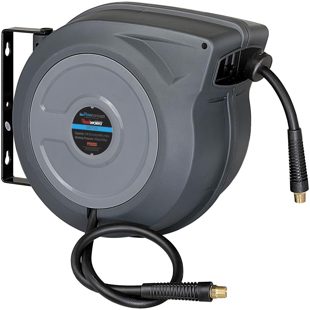 Serie 827 automatisk slangeopruller til luft. Oprulleren er monteret med polymerslange, som tåler et maks. tryk på 20 bar. Slangeoprulleren låser automatisk slangen ved ønsket længde og er udstyret med “Soft Block”, som sikrer pålidelig og sikker tilbagerulning af slangen. Boksen er fremstillet af slagfast polypropylene og monteret med et drejeligt væg-/ loftbeslag.