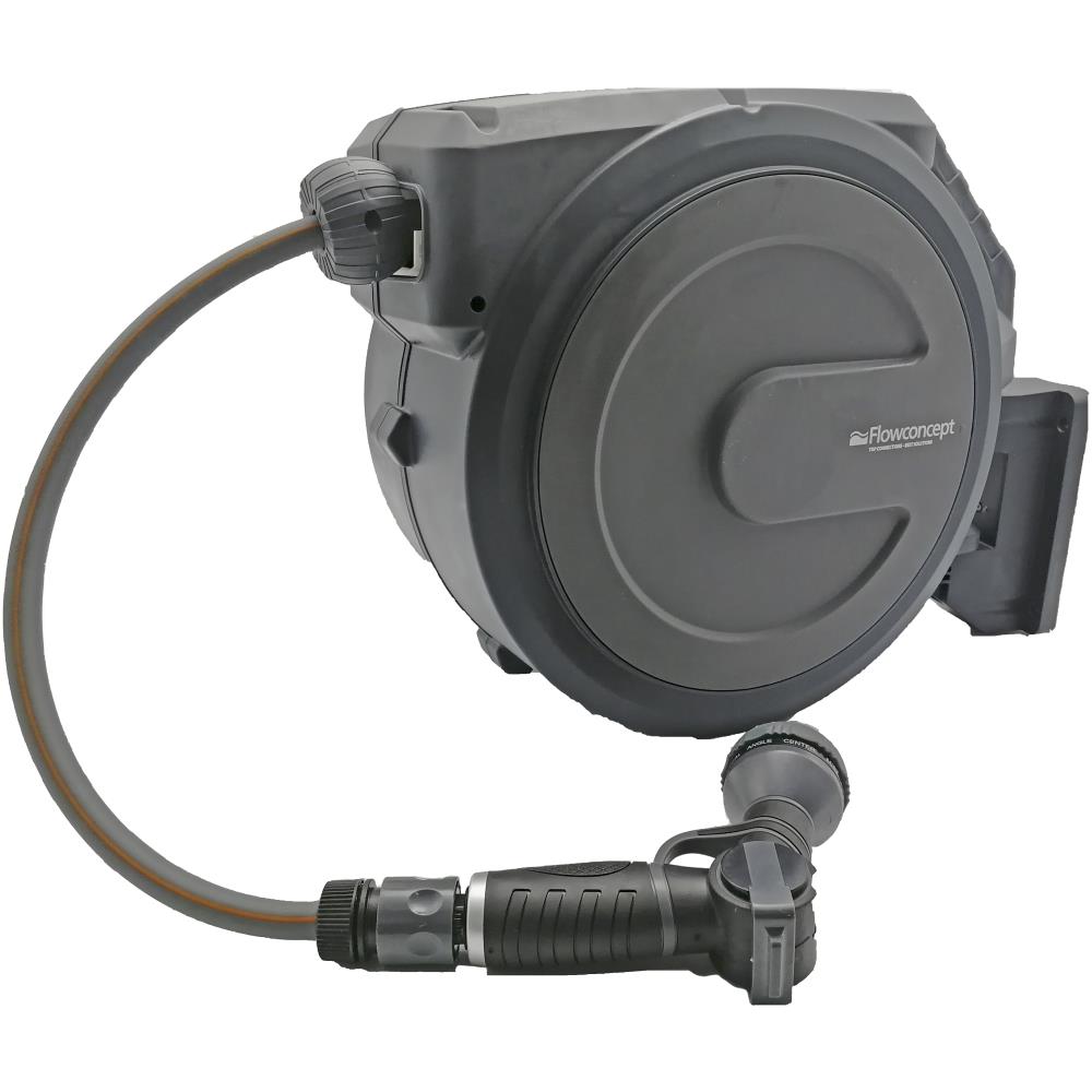 Automatisk slangeopruller for vand. Oprulleren har “soft block” mekanisme og boks udført i slagfast plast med drejeligt vægbeslag. Monteret med blød og kinkfri hybridslange 1/2″×40 mtr. samt 2 mtr. tilslutningsslange og hanenippel til 1/2″ og 3/4″. Maks. tryk 8 bar. Leveres med multispulepistol.