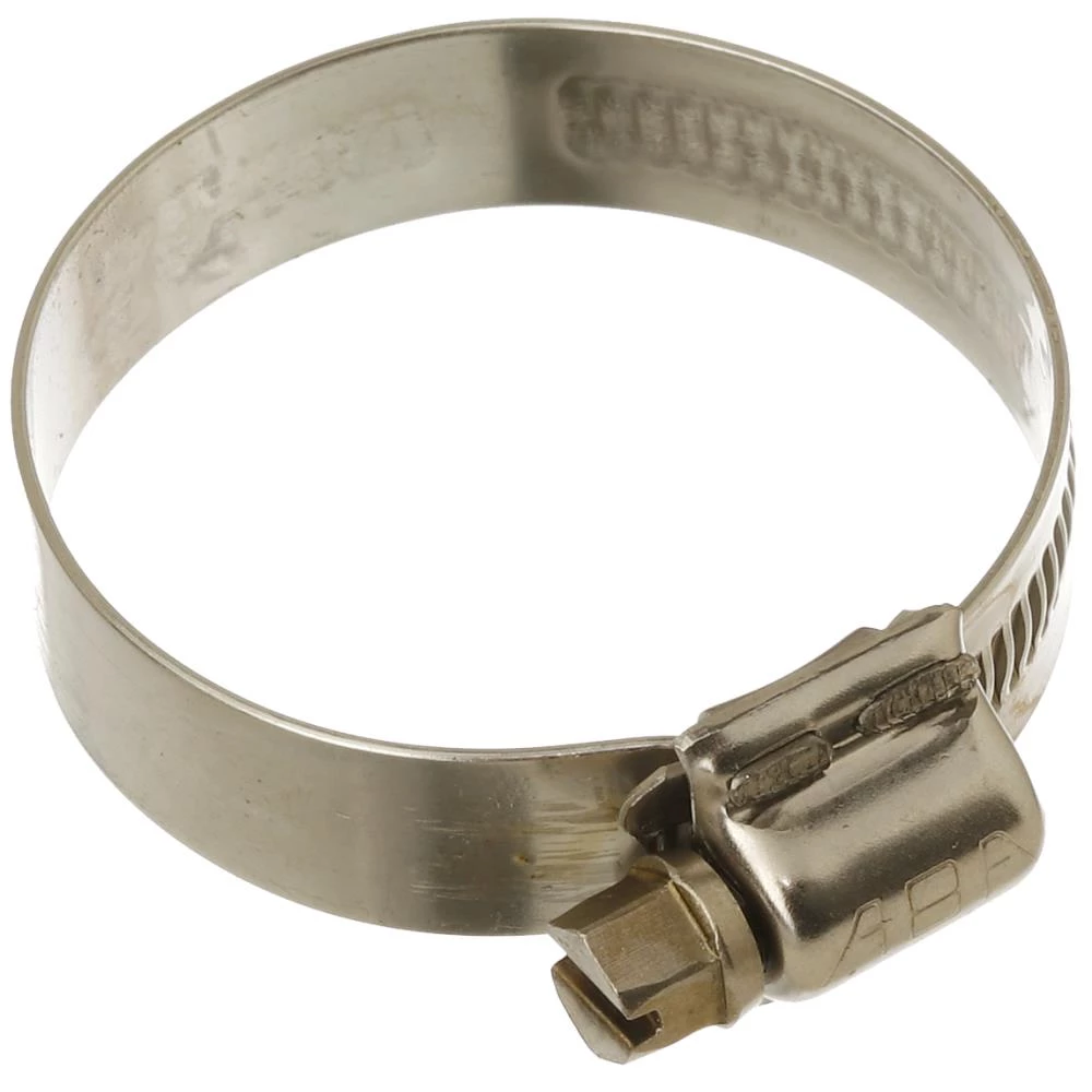 Syrefast, AISI 316 spændebånd. 6kt skrue med kærv for valgfri brug af skruetrækker eller topnøgle M7. Fås i mange størrelser med enten 9 mm eller 12 mm båndbredde.