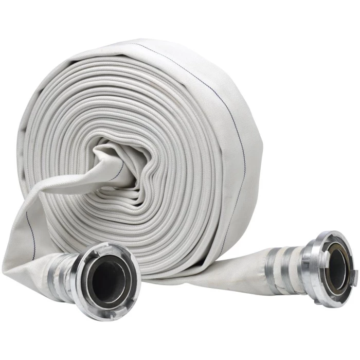 Brandslange med Storz kobling i begge ender. Hvid, fladliggende, ekstruderet trykslange fremstillet af vejrbestandig gummi, med udvendig polyesterarmering. Let og smidig brandslange, med stor rivestyrke. Slangen er behandlet mod råd og ældning Udvendig: Polyestergarn. Indvendig: Syntetisk gummi. Temperatur: -20°C til +60°C. Fås i flere varianter.