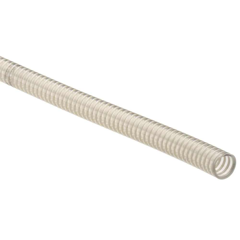 Plastslanger med PVC spiral, Transflex SE Ftalatefri. Transparant PVC slange med hvid PVC spiral. Glat indvendig. Glat overflade i dimensionerne 20-70 mm. Let korrugeret overflade fra 75-151 mm. Mærkning 20-70 mm.: SPIRABEL SNT-S Ø inn 10/2011 [batch number]. Mærkning 75-151 mm.: SPIRABEL SNT Ø inn 10/2011 [batch number]. DEHP- og ftalatfri og dermed reduceret PVC afgift. Velegnet som suge- og trykslange i levneds-middelindustrien til ikke fedtholdige levnedsmidler som fx juice og vin. Temperatur: -15°C til +60°C. Pris pr. meter. Fås i flere dimensioner.