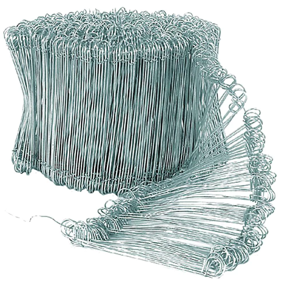 Edma bindetråd, galvaniseret. Bundt med 1000 stk. Tykkelse 1 mm, længde 120 mm med øjer. Bruges til sækkelukker/bindeapperat ved forskalningsarbejde, hegnsarbejde o. lign.