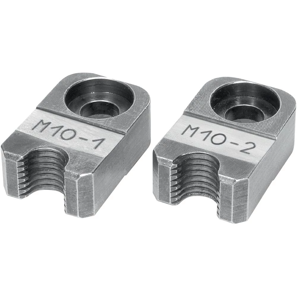 Gevindklippeindsatse M med gevindkontur. Særdeles præcist indarbejdet på CNC-bearbejdningscentre til at føre gevindstangen nøjagtigt under klipningen. Tangdele, gevindklippeindsatse og specielt udlagte og hærdede skærekanter, præcist fremstillet. Gevindstangen kan efter klipning skrues ind i rørspændebåndet eller i møtrikken på klippestedet uden efterbearbejdelse. Fås i flere varianter.