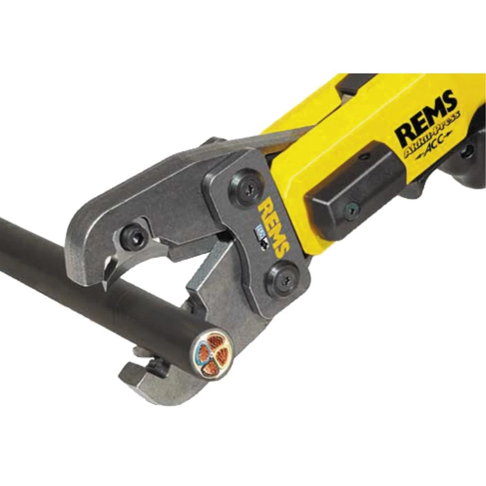 Højbelastbar kabelsaks produceret af smedet og specielt hærdet specialstål til klipning af elektriske kabler. Udskiftelige kabelskær produceret på CNC-bearbejdningscentre. Målnøjagtig skæregeometri med høj standtid. Stort klippeområde. Drift med elektriske Rems radialpressmaskiner (undtaget Rems Mini-Press ACC) og med andre, egnede radialpressmaskiner af andre fabrikater.