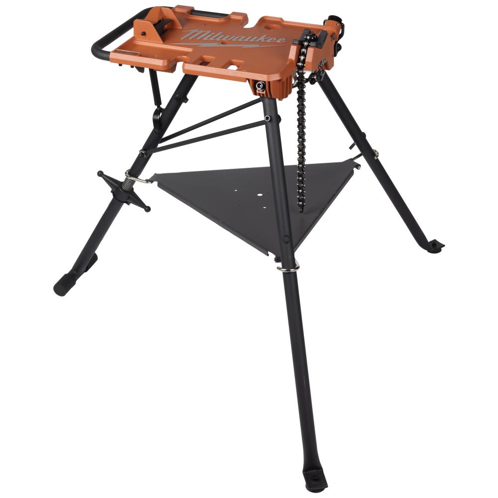 Sammenfoldeligt rørstativ for lettere transport og effektiv opbevaring. Kan holde materialer såsom rør, stivere, U-jern, vinklet jern og andre materialer op til 165 mm eller 6″. Aftagbar hylde gør det let at installere og fjerne den nederste materialehylde efter behov. Der findes forskellige kæber til forskellige materialer. MPS-SSJ til rustfrit stål og MPS-NCJ til bløde materialer såsom PVC. Leveres med MPS-RJ kæber til universalbrug.