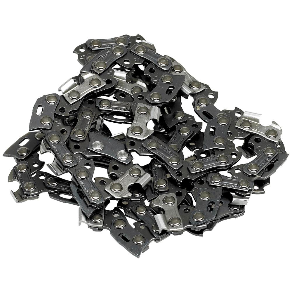 12″ (300 mm) savkæde til kædesav CS30EG, CS30EC, CS33EA, CS33EB og CS33ET. Speciel stållegering for bedre slidstyrke mod mekaniske brud. Led og skær er hårdtforkromet for at opnå optimale skæreegenskaber og længere intervaller mellem slibningerne. Lejerne er monteret med hypoidolie for minimal slitage ved “indkøring” af savkæden. Kædedeling 9,52 mm (3/8″) LP. Til kærvbredde 1,3 mm (0,050″). 45 kædeled. Leveres færdigslebet fra fabrikken.