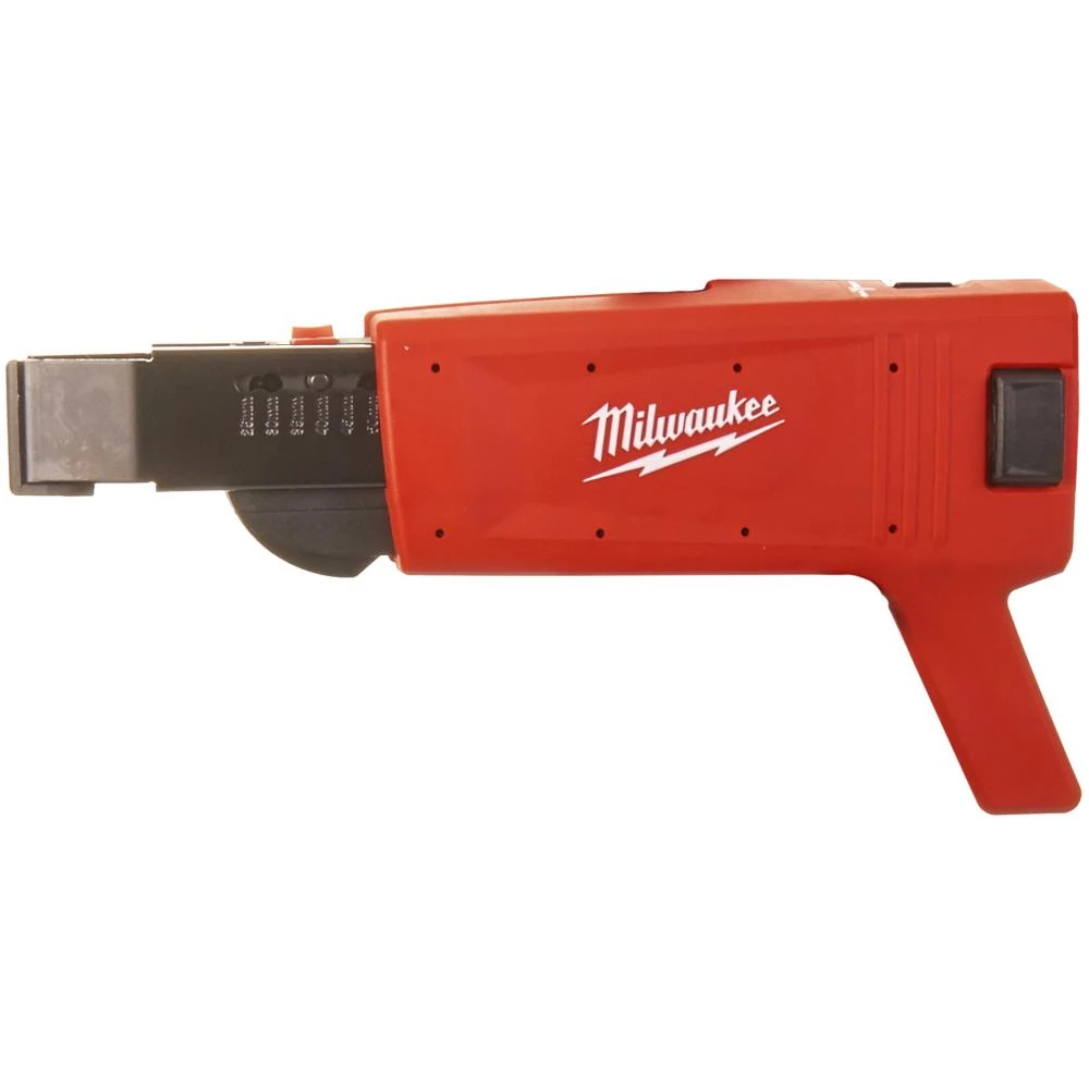Skruebælteforsats til M18 FSG gipsskruemaskine. Aftagbar så der let kan skiftes bit så maskinen kan bruges uden forsatsen. Preindstillinger for de mest alm. skruestørrelser. Træskruer fra 25-55 mm. Dybdejustering uden brug af værktøj. Roterbar med 8 faste stop når der arbejdes ved trang plads.