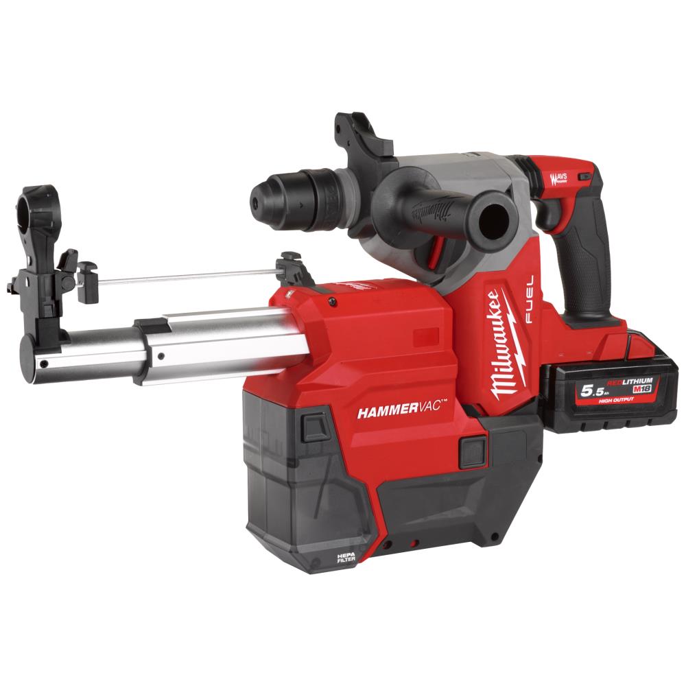 M18 støvudsug til M18 FH/FHX/ONEFH/ONEFHX-serien af SDS-plus kombihammere. Designet til effektivt at opsamle støv med automatisk betjening fra tænd/sluk-knappen. Det effektive HEPA-filter opsamler 99,97 % af luftbårne partikler. Manuel filterrengøringsmekanisme. Mundstykker kan skiftes uden brug af værktøj. Justerbar dybdemåler. LED-lys. Leveres med 2 mundstykker Ø16 mm/Ø26 mm.