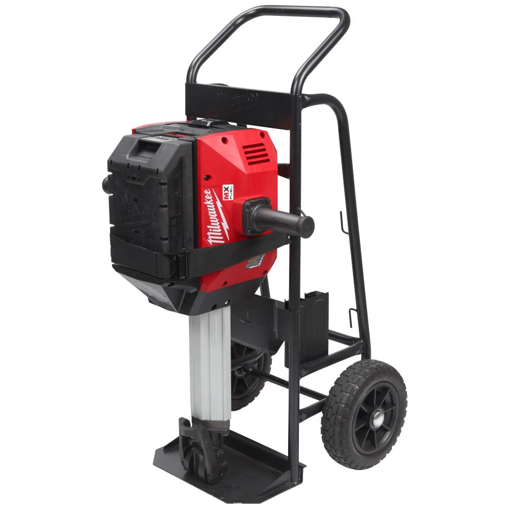 MXF DHT trolley til MX Fuel nedbrydningshammer DH2528H. En letvægtsvogn med store terrængående hjul for let transport til og fra byggepladsen. Sikringsrem holder hammeren sikkert på plads under transport. Med opbevaringsplads til 4 mejsler, lader og ekstra batteri, medfølger ikke.