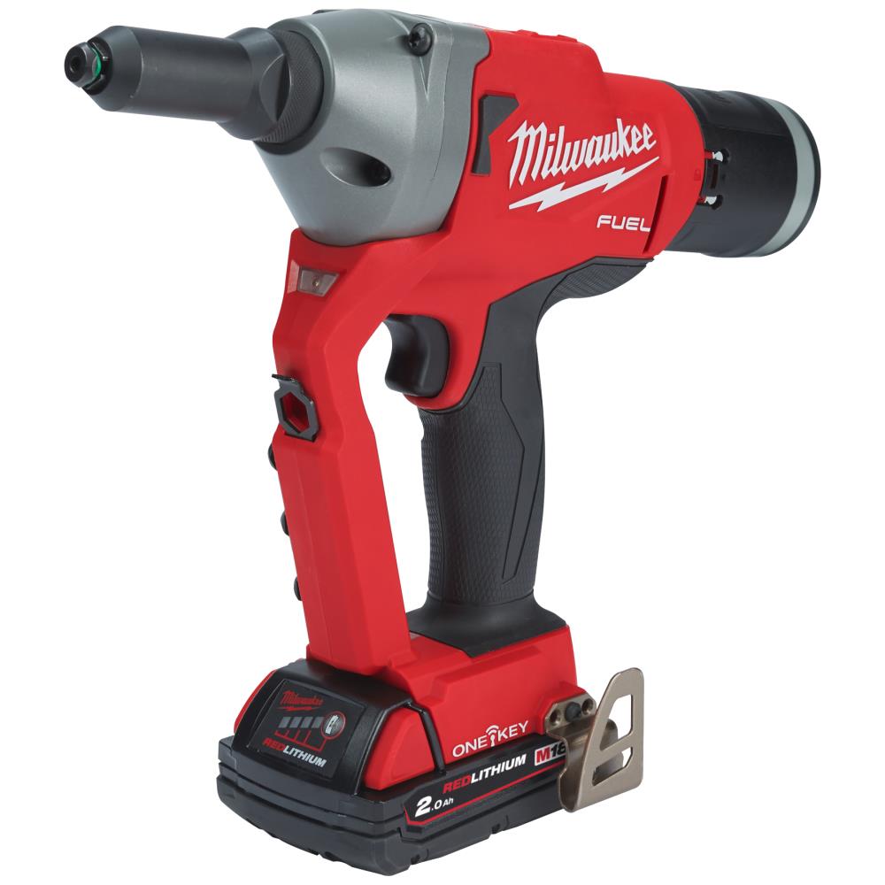 Blindnittepistol 4.8-7mm one-key M18 ONEFPRT-202X. 18 V Fuel popnittepistol med One-Key værktøjssporing er en optimeret, batteridrevet løsning, der leverer hurtig og enkel nitning, mens ydelsen, holdbarheden og størrelsen bevares. Fastgør alle nitter i aluminimum, stål, rustfrit stål og kobber fra 4,8 mm, 6,9 mm, 6,4 mm og 7,0 mm til en lang række opgaver. Trækkraft på 20.000 N med slaglængde på 30 mm giver kraften til at udføre større diametre uden problemer. Stållegeret 3-kæbe design leverer mere arbejde mellem kæbeskift. Værktøjsfri adgang til nem rengøring af kæber. Indbygget næsestykkeopbevaring og nøgle for brugervenlighed. Den transparente nitteopsamler giver mulighed for at se når opsamleren er fuld. One-Key værktøjssporing og -sikring tilbyder en gratis cloud-baseret platform med sporingsnetværk og flådestyring af værktøjer, samt en fjernstyret låsefunktion. Fuel platform. Den kulfrie Powerstate-motor, Redlithium-batteriet og Redlink Plus elektronikken leverer uovertruffen kraft, driftstid og holdbarhed. Fleksibelt batterisystem: passer med alle Milwaukee M1™ batterier. Fås som tool-only eller med batterier og lader.