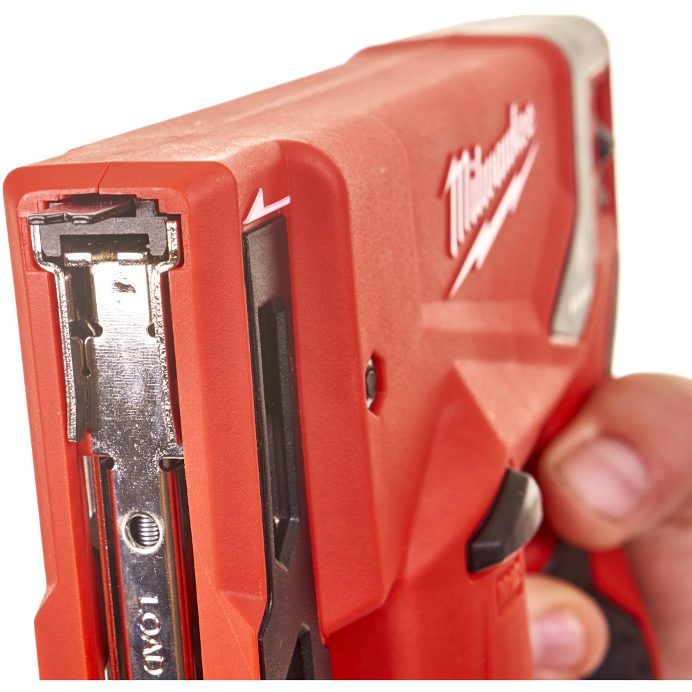 12 V hæftepistol til alm. T11, T50 og T140 hæfteklammer fra 6 til 14 mm. Ready to Fire-teknologi gør den ekstremt hurtigskydende. Sekvens- eller serieskydning. Affyrer ikke hvis magasinet er tomt. Kompakt længde, højde og bredde for lettere adgang ved opgaver med begrænset plads. Justerbar bæltekrog. Fleksibelt batterisystem: passer til alle Milwaukee M12 batterier. Fås som tool-only eller med batterier og lader.