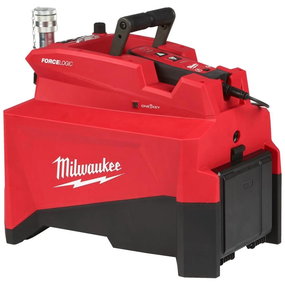 M18 Force Logic hydraulisk pumpe med One-Key. 700 bar tryk til press, klip eller stansning (hoveder/kæber ikke inkluderet). Hurtigere arbejdscyklusser end andre pumper. Standard Cejn Serie 115, G1/4″ hunstik-tilkobling passer til det meste tilbehør. Fjernbetjening med 1,8 meter kabel der kan forlænges op til 7 meter med tilbehørsudstyr. IP54. PFM giver konstant trykindikation via et grønt lys. Leveres med 1× 12,0 Ah Redlithium Forge-batteri, hurtiglader og uden tilbehør.