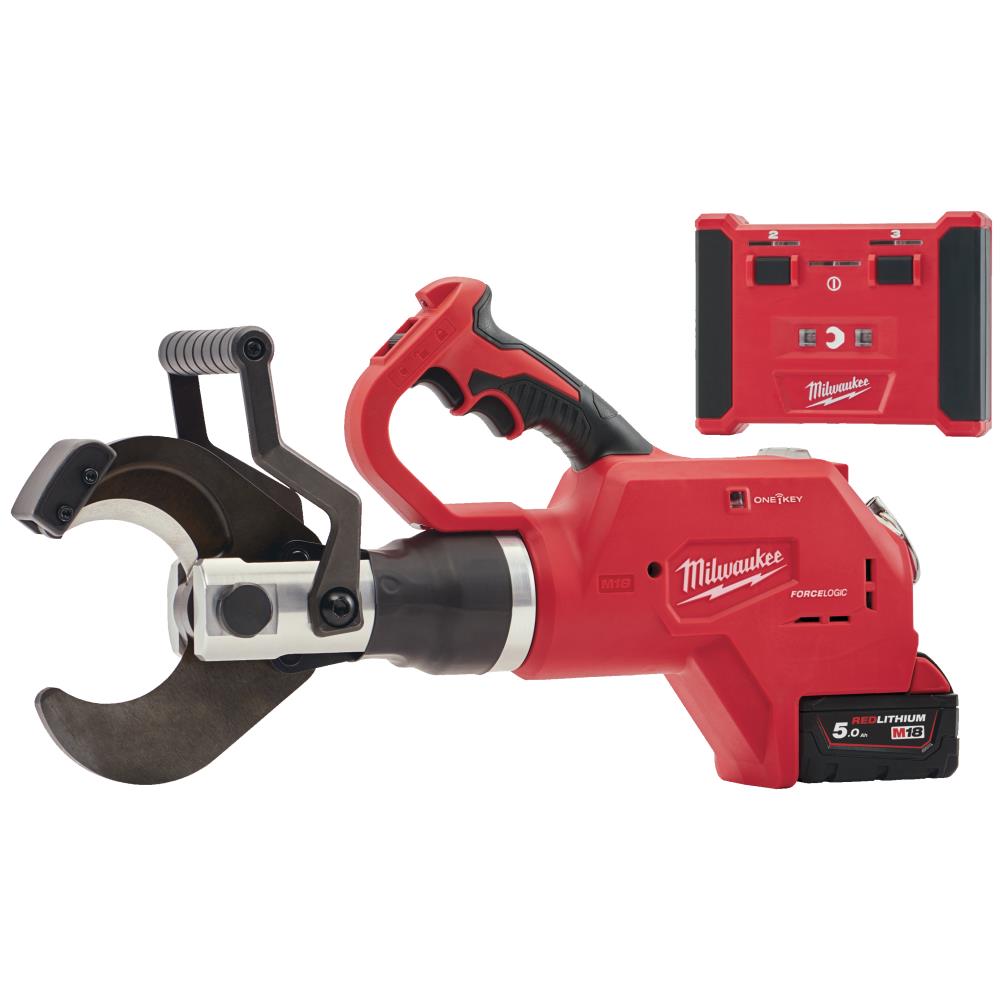 M18 Force Logic hydraulisk kabelsaks til brug under jorden – klipper kabler på under 10 sekunder med en trykkraft på 77,8 kN. Klipper aluminium- og kobberkabler op til 75 mm. Kommunikerer trådløst med fjernbetjeningen via sikker Bluetooth forbindelse, så der ikke er nogen fysisk kontakt til værktøjet og det derfor er 100 % sikkert at bruge. Grønt LED-lys på fjernbetjeningen viser når værktøjet er færdigt med at klippe. Let at skifte mellem manuel og fjernbetjent kontrol. Afbalancet design, håndtag og krog til let ophæng. Design med åbne kæber giver let adgang i grøfter. Powerstate kulfri motor øger effektiviteten, holder længere og giver maksimal kraft. One-Key teknologi giver brugeren komplet status over brug, kommende vedligeholdelse m.m. samt tracking og værktøjssikkerhed. Redlink Plus elektronik giver avanceret digital overbelastningsbeskyttelse for både batteri og værktøj, samt sikrer lang holdbarhed. Redlithium batteriet er ekstremt solidt konstrueret, med elektronik uden hukommelseseffekt og længere driftstid over batteriets levetid. Fleksibelt batterisystem: passer med alle Milwaukee M18 batterier. Leveres i transportkuffert inkl. 2× M18 B5 batterier og M12-18 FC lader.