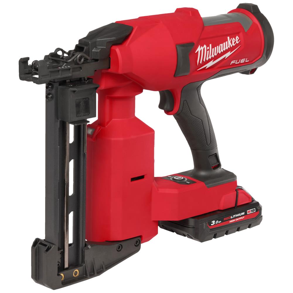 Klammepistol M18 FFUS-302C. M18 Fuel klammepistol til hegn. Fremragende kraft til konsekvent affyring af 50 mm hæfteklammer i hegnspæle. Ready to Fire teknologi. Kræver ingen gaspatroner og rengøring. Værktøjsfri, hurtig og nem dybdejustering. Dry-Fire lockout stopper maskinen i at affyre hæfteklammer, når magasinet er tomt. Affyrer op til 600 hæfteklammer på et fuldt opladt Redlithium 3,0 Ah batteri. Affyrer Milwaukee 9 gauge hæfteklammer med modhager fra 40 mm til 50 mm. Fås som tool-only eller med batterier og lader.