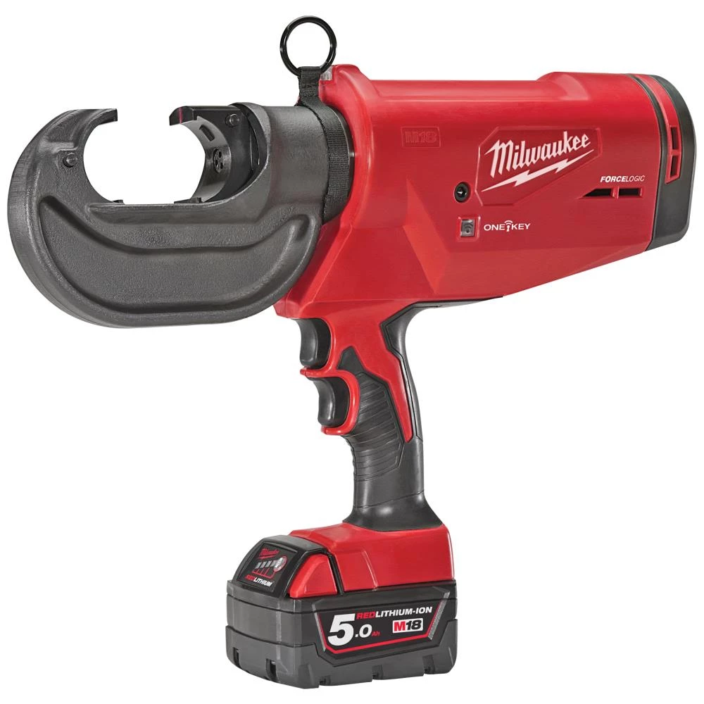 Let og velbalanceret M18 Force Logic hydraulisk pressværktøj med ergonomisk greb. Tydelige markeringer på værktøjets kæber øger præcisionen ved opsætning før press. 42 mm kæbeåbning og 350° justerbart presshoved gør det let at komme til ved trang plads. Klarer kabelsko med 109 kN kraft. Klarer press op til 400 mm². Indikatorlys markerer med grønt lys når et press er gennemført korrekt. Påbegynder ikke et press hvis der ikke er batteri nok til at gennemføre det. Universalfæste til de mest gængse U-bakker (C-form) på markedet. Forseglet elektronik beskytter mod støv og fugt. Værktøjet leverer tracking, værktøjssikkerhed og data til rapporter gennem One-Key app’en med One-key adapteren. Powerstate kulfri motor øger effektiviteten, holder længere og giver maksimal kraft. Redlink Plus elektronik giver avanceret digital overbelastningsbeskyttelse for både batteri og værktøj, samt forbedrer værktøjets ydeevne under belastning. Redlithium batteriet er ekstremt solidt konstrueret, med elektronik uden hukommelseseffekt og længere driftstid over batteriets levetid. Leveres inkl. M18 B5 og M18 B2 batterier samt M12-18 FC lader i transportkuffert.
