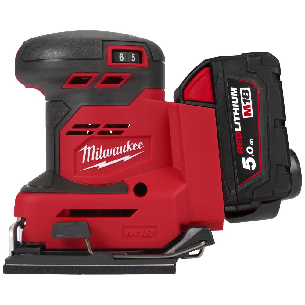 Rystepudser 113×104mm M18 BQSS-502B. M18 rystepudser med 11.000-13.000 omdr./min og 1,6 mm svingningsdiameter for hurtigere slibning af materialet. Justerbar hastighed med 6 hastighedsindstillinger. Lavt vibrationsniveau på kun 5,23 mtr./sek². Universal selvklæbende slibepude og papirclips til almindeligt sandpapir. Slibeplade størrelse 113×104 mm. Leveres med DEK26 støvpose og 2× sandpapir. Fås som tool-only eller med batterier og lader.
